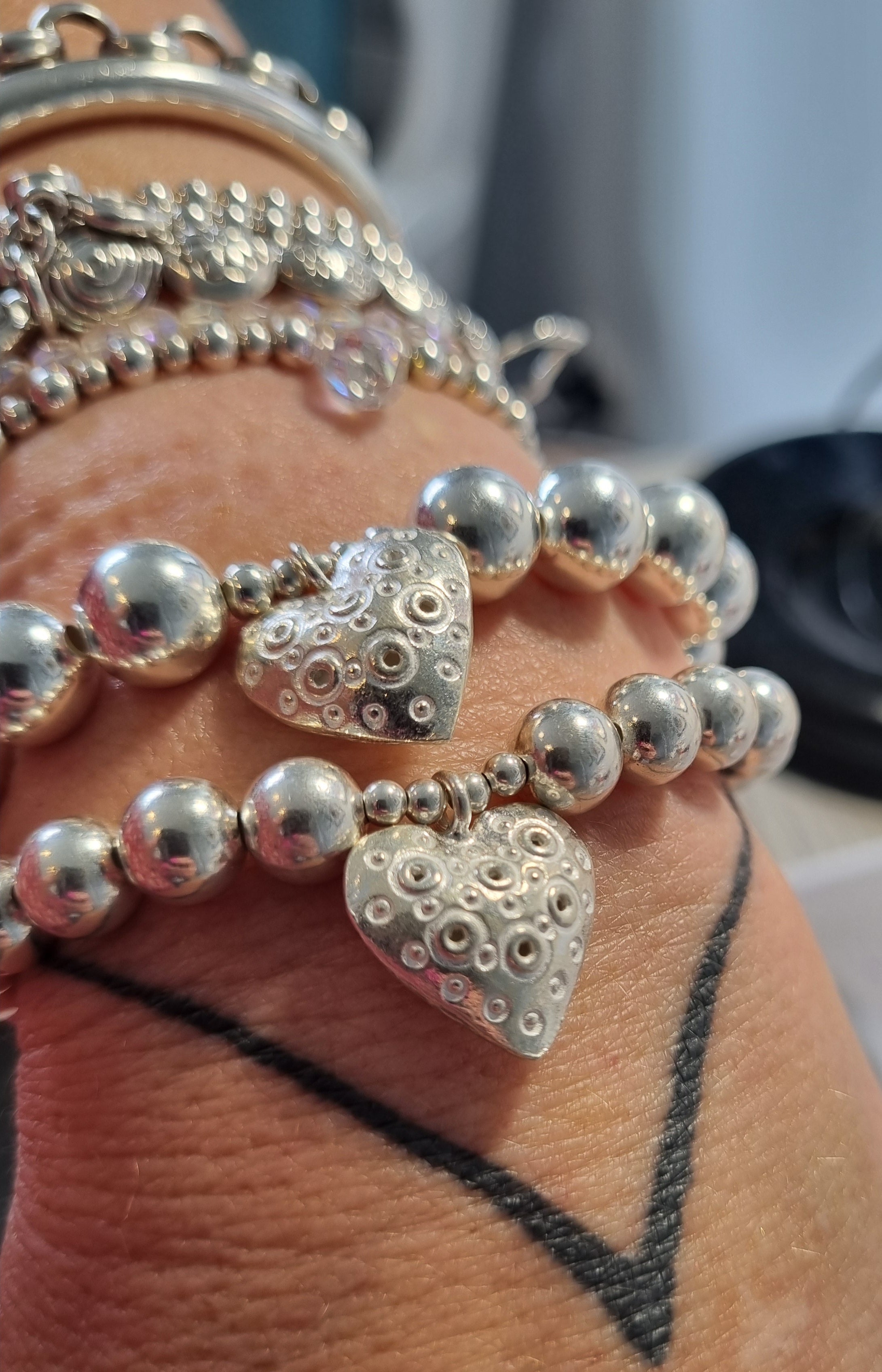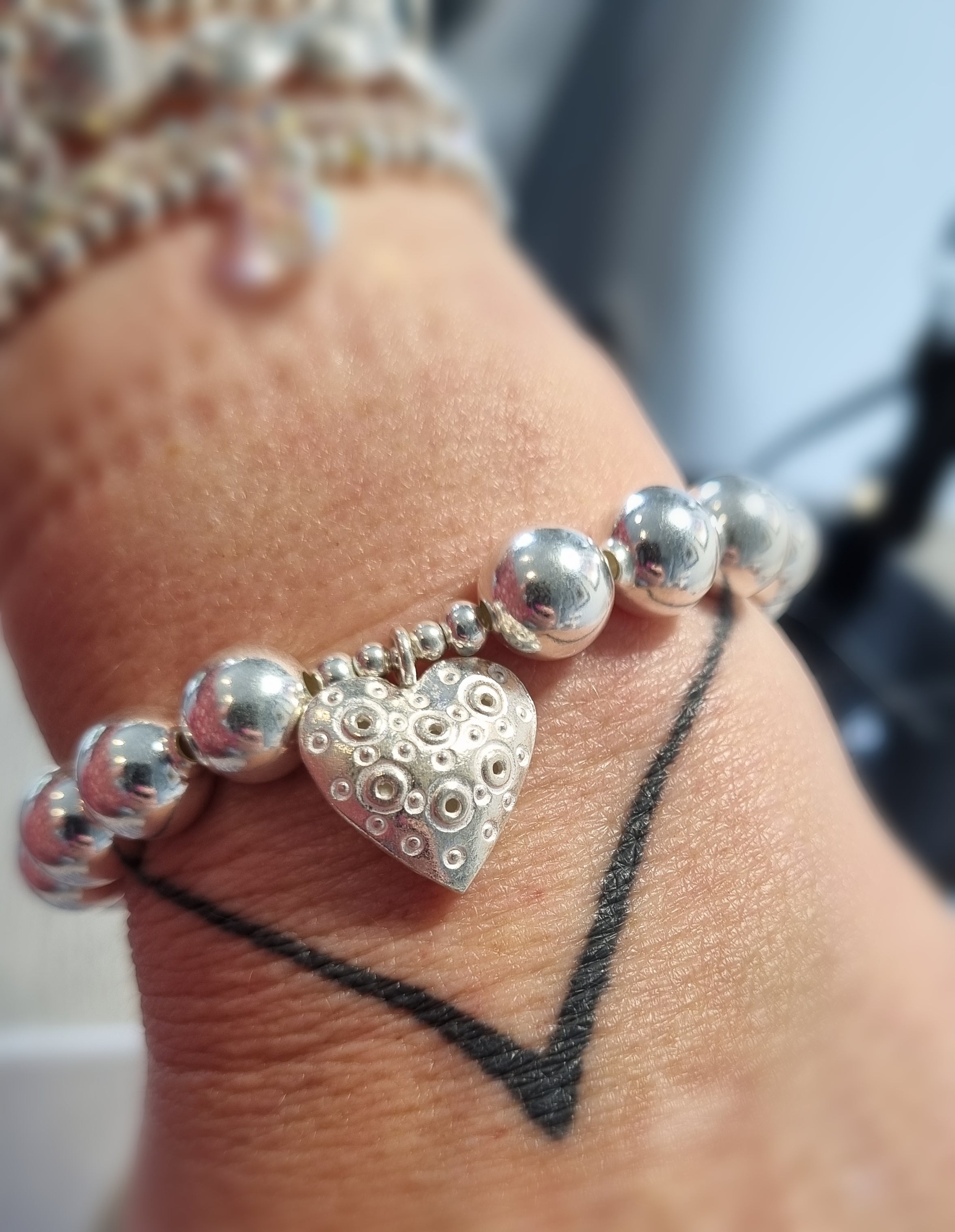 This bracelet is made with 6mm sterling silver beads on high quality stretch cord